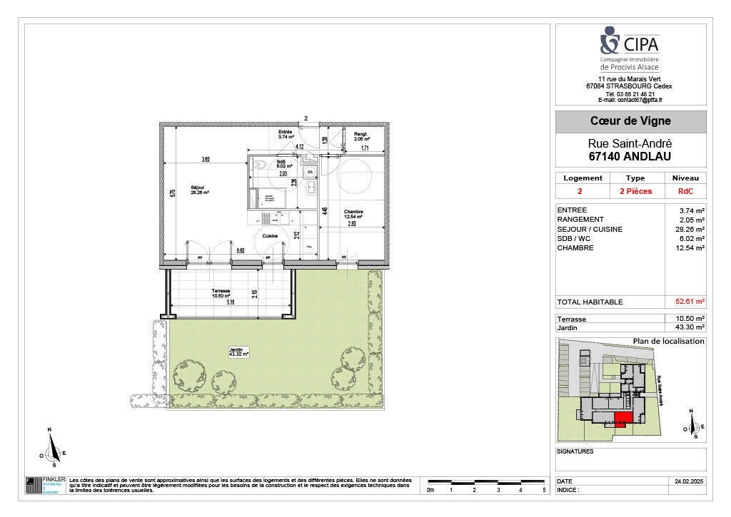 2 pièces de 52.61 m² avec terrasse et jardin de 53.80 m²
